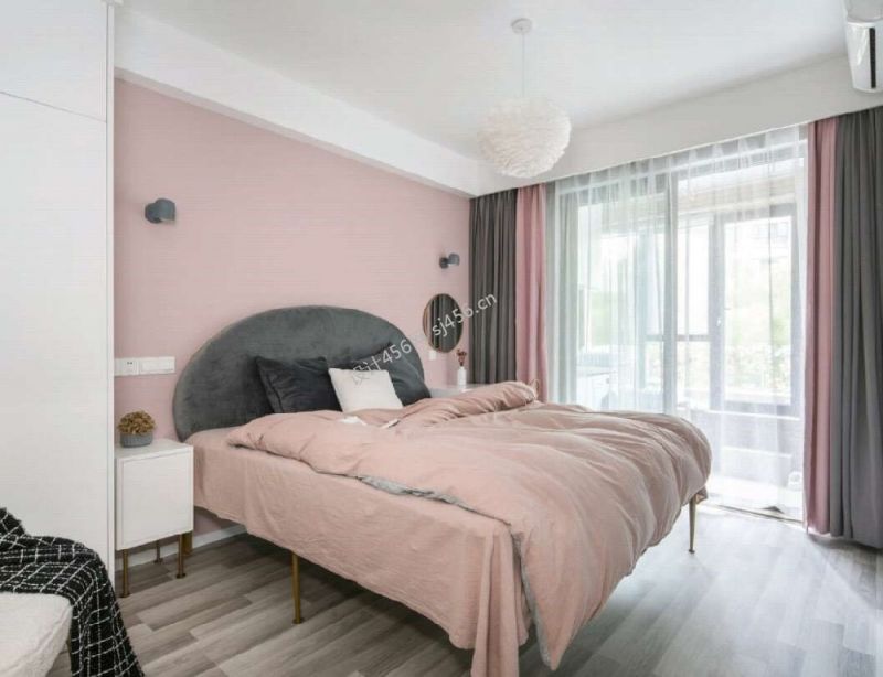 58平米一居室卧室床头软包装修效果图