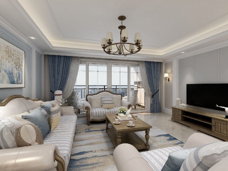 鲁商公馆美式风格119平米三居室装修效果图案例