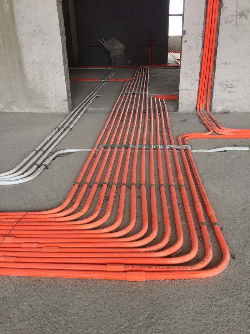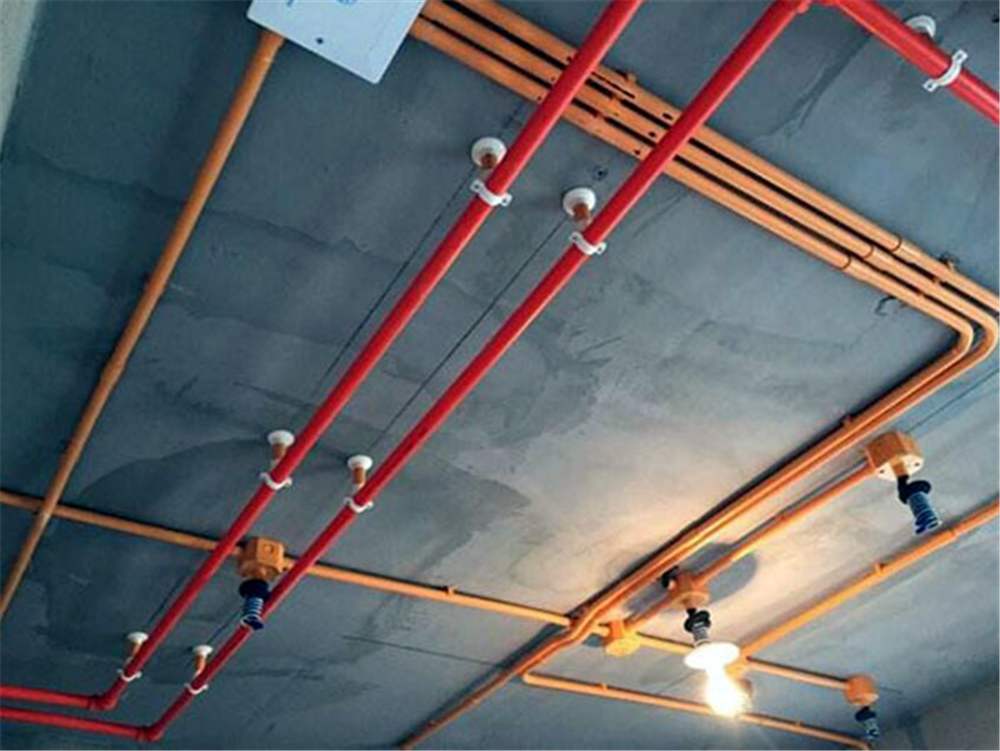 在标准装修施工时,强弱线路必须采用PVC管进行套管保护,并通过不同颜色的PVC管进行区分,通常红色PVC管为强电,蓝色PVC管为弱电。