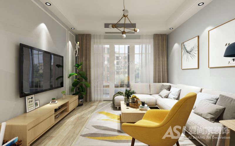 爱尚家装饰 鑫源人才公寓78平现代简约二居室装修设计效果图