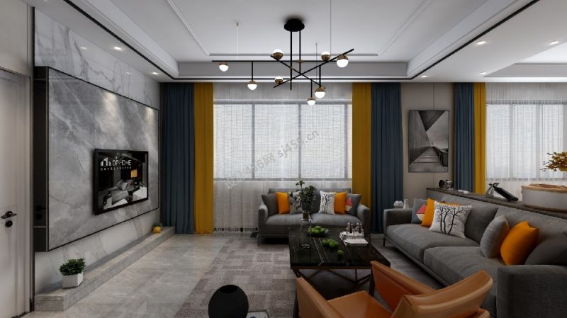 银川恒大帝景现代简约风格97平米三居室装修案例风效果图