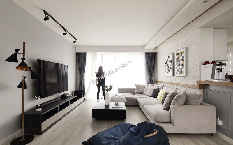绿地香树花城101平米现代简约风格装修效果图风效果图