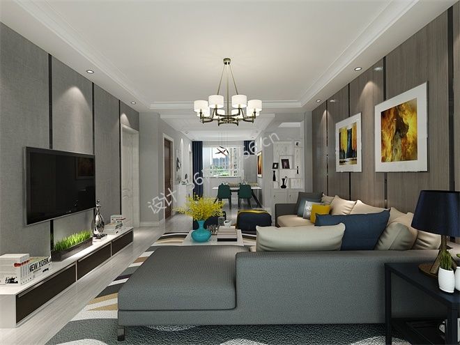 131平米现代简约三居室客厅吊灯装潢效果图