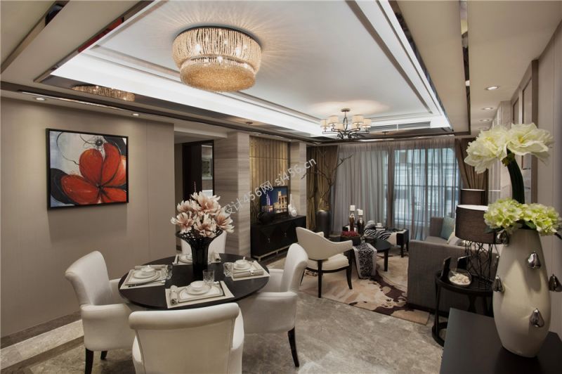 三居室混搭风格家装样板间恒大御景半岛效果图风效果图