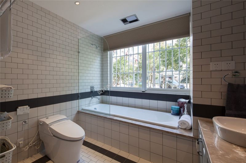 141平欧式风格卫浴间砖砌浴缸装修效果图片图