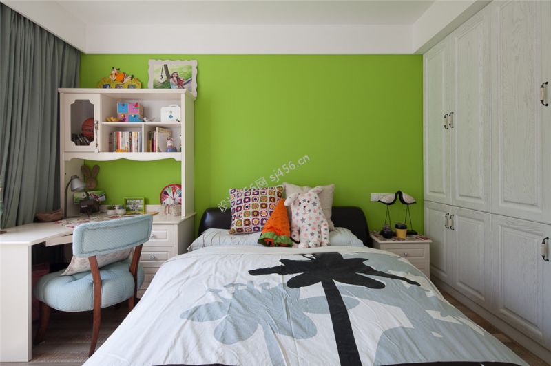 141平欧式风格卧室绿色背景墙装修效果图