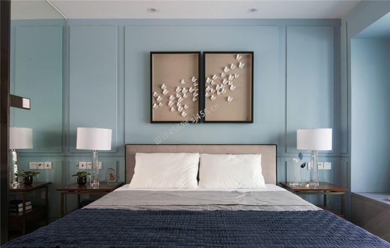 现代风格三居室客厅背景墙淡蓝色装修图片