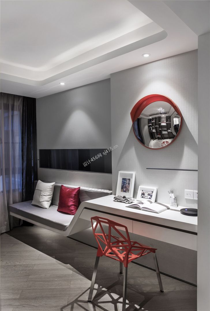 现代风格138平三居室房间书桌背景墙装潢设计图