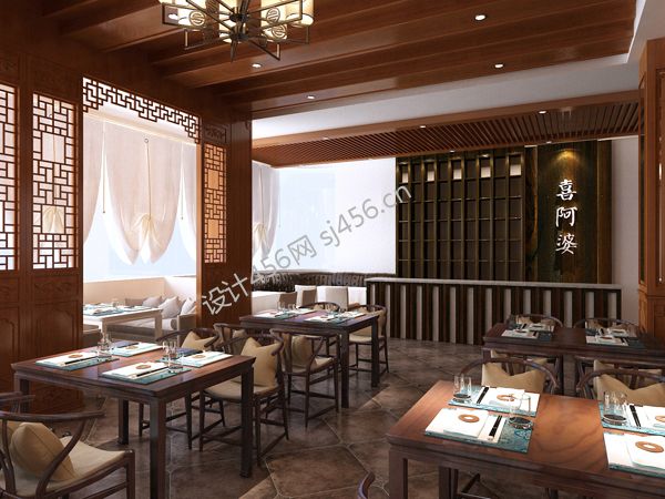 400平米中式风格餐厅大厅桌椅摆放效果图
