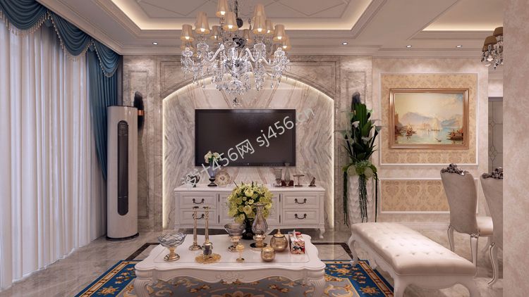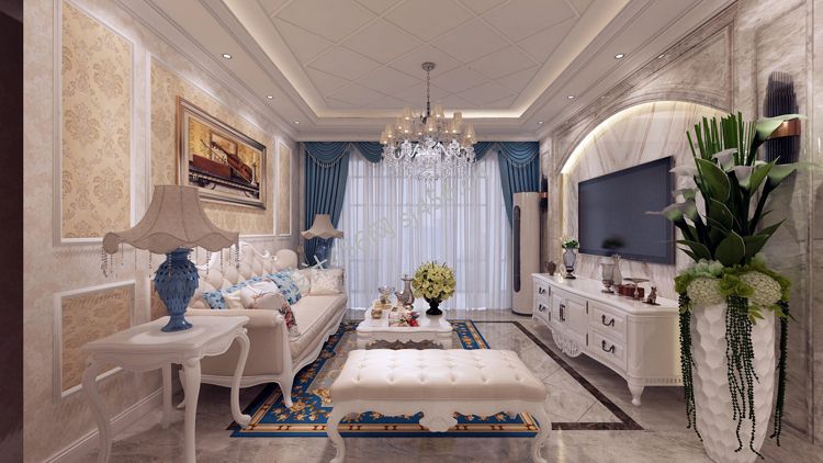 营口林昌·第五郡130平复古法式平层装修案例风效果图