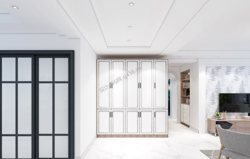 营口普罗旺斯110平米三居室现代简约风格走廊吊顶装修设计效果图