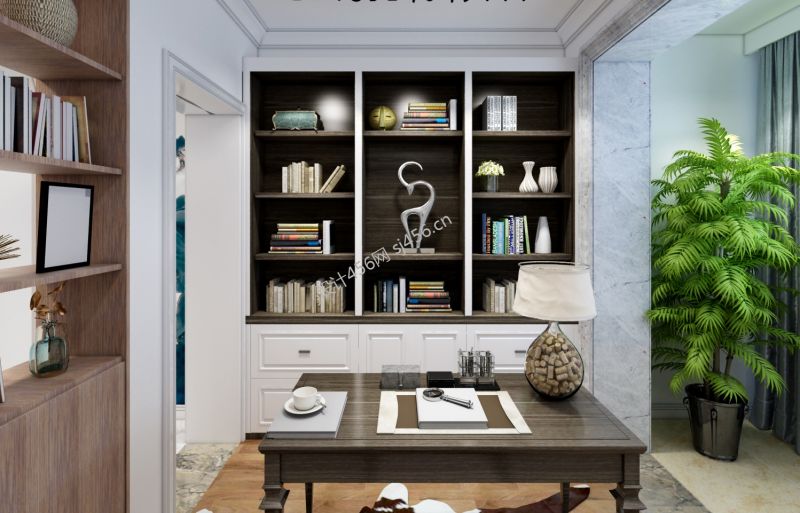 营口普罗旺斯110平米三居室现代简约风格书柜装修设计效果图