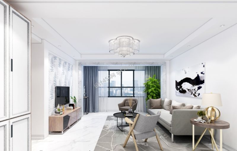 营口林昌·第五郡150平三居室现代风格装修案例风效果图