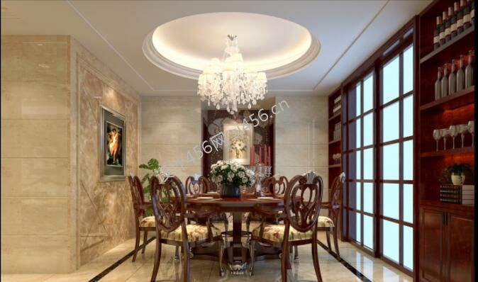 欧式风格150平米三居室餐厅圆形吊顶装修效果图