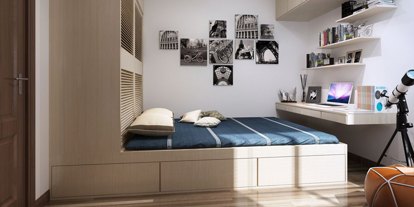 不仅要美观,实用性是最重要的,包括木村的颜色都要与卧室的色调形成一个统一性,这样才能显示其合二为一的效果。