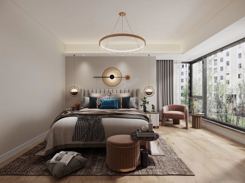 玉林美兰国际城100平米现代简约三居室装修案例风效果图