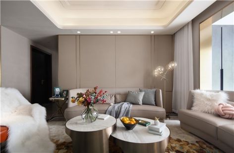 120平米现代简约三居室客厅沙发墙装修图片