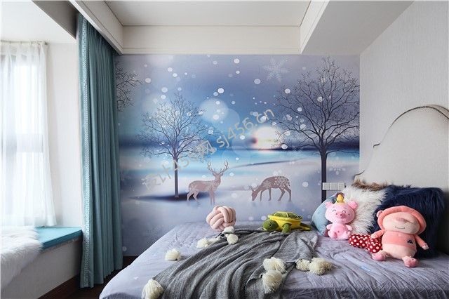 120平米现代简约三居室儿童房背景墙装修图片