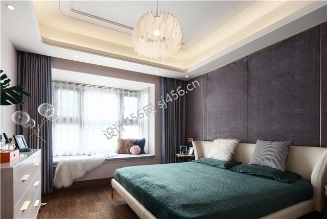 120平米现代简约三居室卧室背景墙装修图片