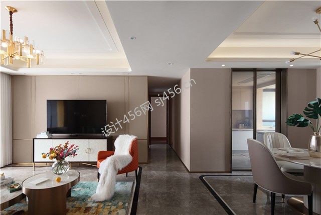 金泰雅苑125㎡现代轻奢三居室装修案例风效果图