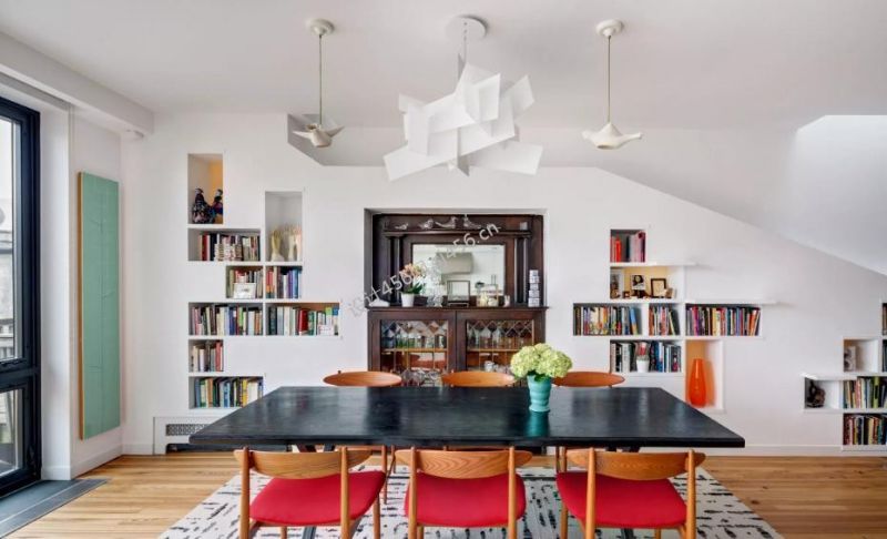 混搭风格91平米一居室客厅书柜设计装修效果图