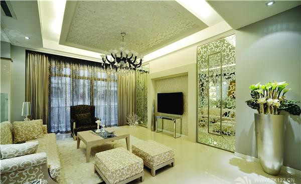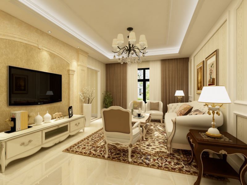 中邦世纪广场轻奢风格103平米三居室装修效果图案例