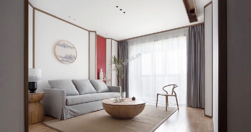 日式风格85平米二居室客厅沙发背景墙装修效果图