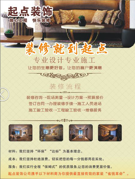 初是看了起点装饰的一个正在施工的工地,现场挺干净的,水管电线也挺整齐的;还有一个是完工的,就是家具还没进去,看上虽然去有些空,但装修工艺很好,看上去不错,现在我们签订了起点装饰,希望我们家后期施工顺利。