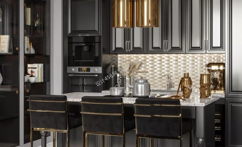 轻奢风格114平米厨房吧台吊灯设计装修效果图