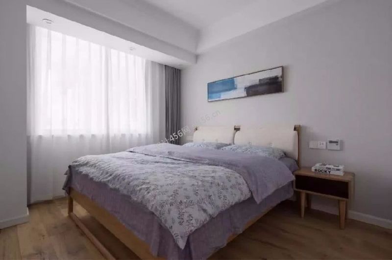 103平米三居室卧室床头背景墙挂画装修效果图