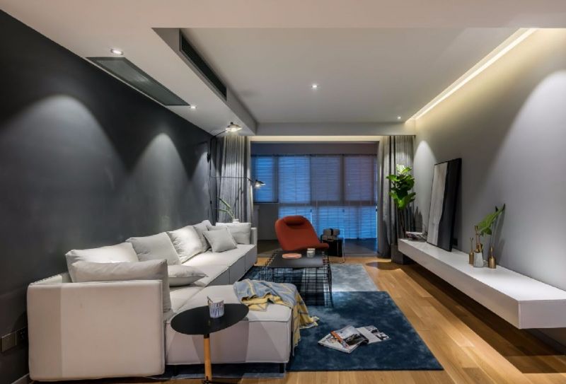 中建滨江新城现代风格136平米三居室装修效果图案例