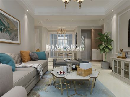 三居130平美式风格装修设计案例风效果图