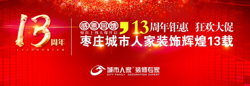 城市人家入驻枣庄13年来,服务上万家业主,以行业标准的施工工艺、高品质的材料优势、专业的家装设计服务引领家装行业前沿。为了感恩回馈枣庄业主朋友对城市人家的选择和信任,在13周年店庆之际,城市人家推出大型家装优惠活动!