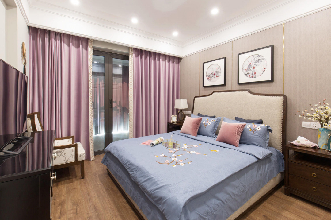 ▲主卧偏紫色调,给人一种端庄优雅的感觉,宛如无限飘渺意境悠远的东方式画卷