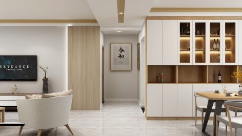 安桥·学府美郡——四室两厅轻奢新中式装修案例风效果图