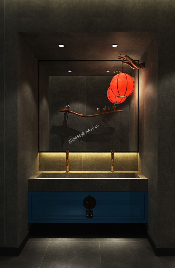中式风格200平米餐厅卫生间装修效果图
