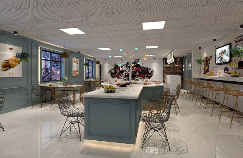 轻奢风格110平米面包店室内装修效果图
