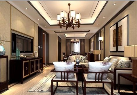 华发山庄中式风格143平米三室两厅装修案例风效果图