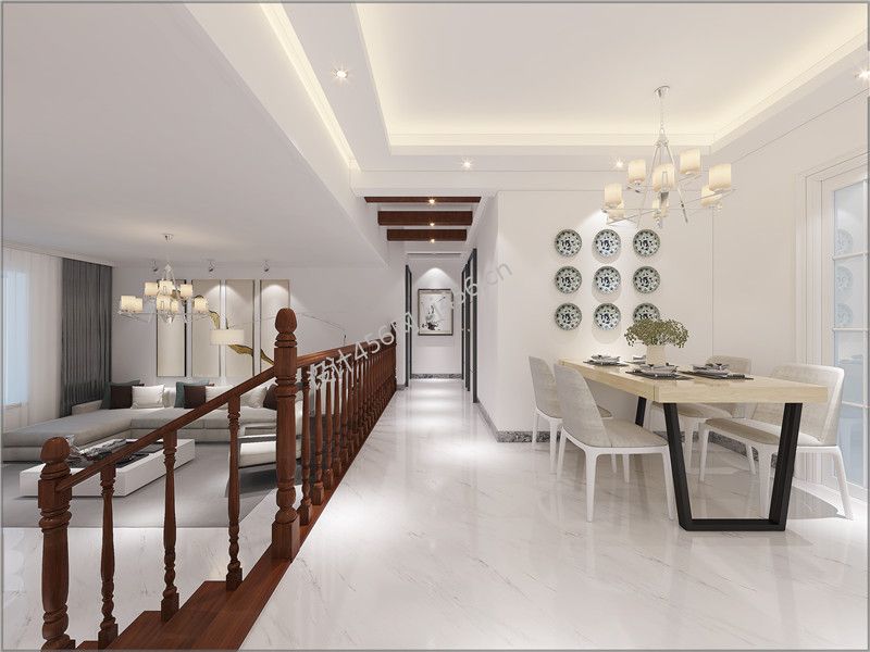 现代复式楼装修效果图 2020餐厅盘子背景墙设计装修