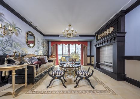 龙湖龙光首开湖城大境新古典风格140平米三室两厅装修案例风效果图