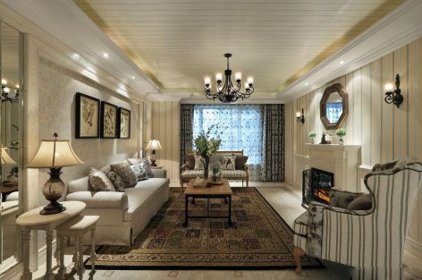 华发又一城美式风格131平米三室两厅装修案例风效果图