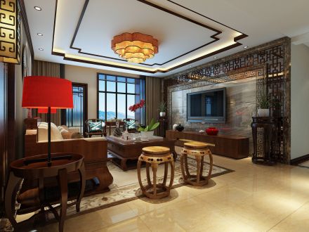 九洲保利天和中式风格140平米四室两厅装修案例风效果图