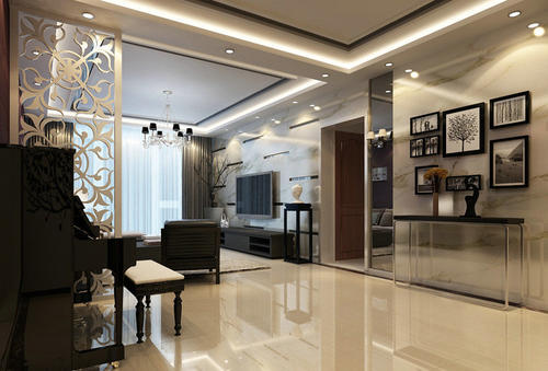 石膏板还可做成各种各样的几何图案,或者雕刻出各式花样的图案,它具有价格便宜、施工简单等特点,因此运用于客厅的吊顶也不失为一个好的方法,只要其装饰效果和房间的装饰风格相协调,便可达到不错的整体效果。