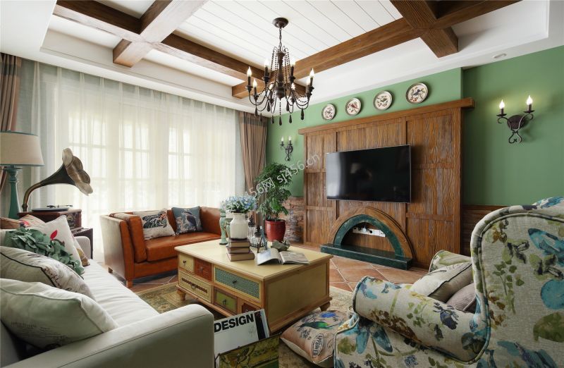 建发央璟美式乡村144平米四室两厅装修案例风效果图