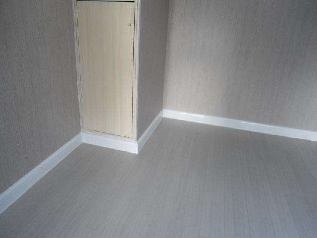 3.踢脚线固定好后就应该对它进行边角的处理了,墙角踢脚线相交的地方要进行45度裁剪的处理,这样可以保证接口处不会有痕迹。然后将裁剪好的踢脚线进项固定,固定方式和之前的一样。此外,踢脚线相交的边缘还可以用刨子刮平整。