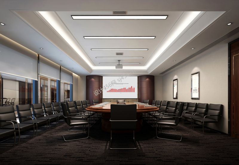 珠海办公空间1104平米新中式风格装修案例风效果图