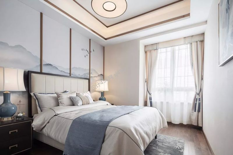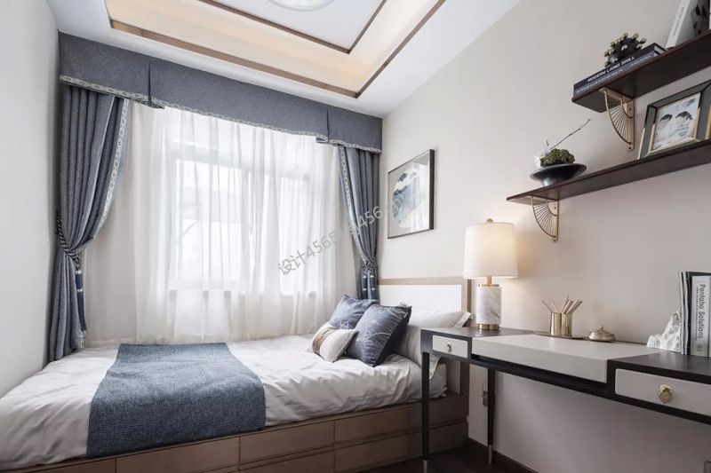 新中式风格118平米四室两厅卧室窗帘装修效果图