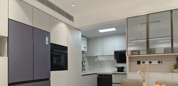 餐边柜建议用定制,并且采用一柜到顶的设计,可以做成入墙式的设计,这样餐边柜与空间硬装完美契合,看起来更美观自然。