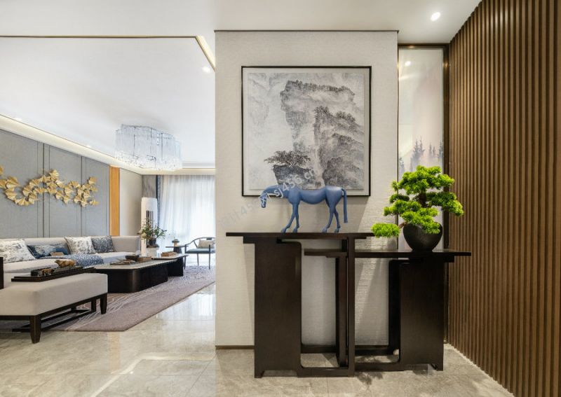 鸿景紫园220平新中式风别墅装修案例风效果图
