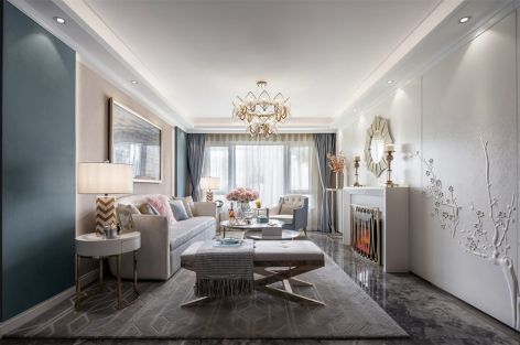 蓝波湾四居139平美式风格装修案例风效果图